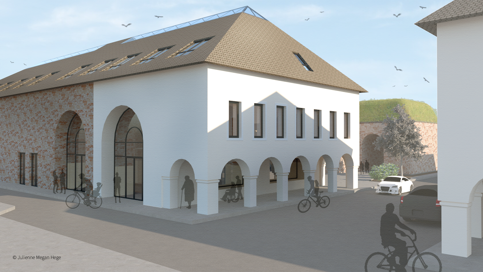 Das Bestandsgebäude wird zu einem Hotel umgebaut, welches ganz der Philosophie des Ayurveda folgt. Im architektonischen Fokus steht das Kreuzgewölbe im Erdgeschoss. Hier findet sich neben der Lobby auch ein Restaurant, welches das Aushängeschild des Living Ayurveda darstellt.